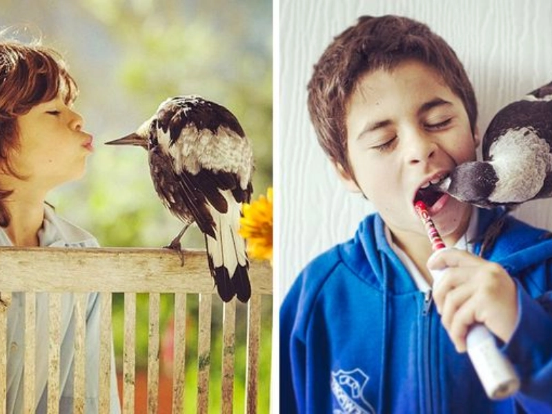 Noah rescued a fallen baby magpie. His family built an indoor nest until she grew strong. She still visits and finally chose a plumeria tree in their garden as her home.