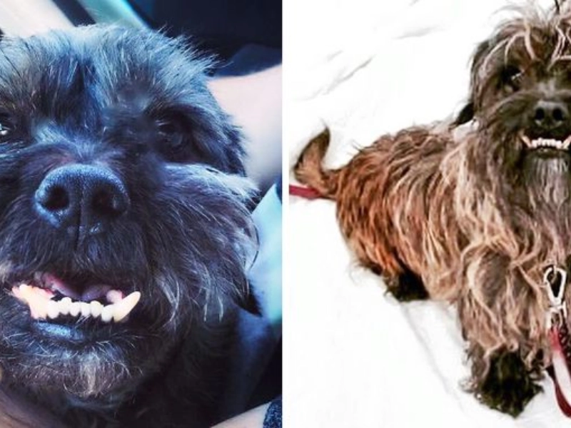 Surrendered because an owner disliked his teeth, this eight year old dog faced slim chances. Now he is adored and nicknamed mini werewolf with pride.
