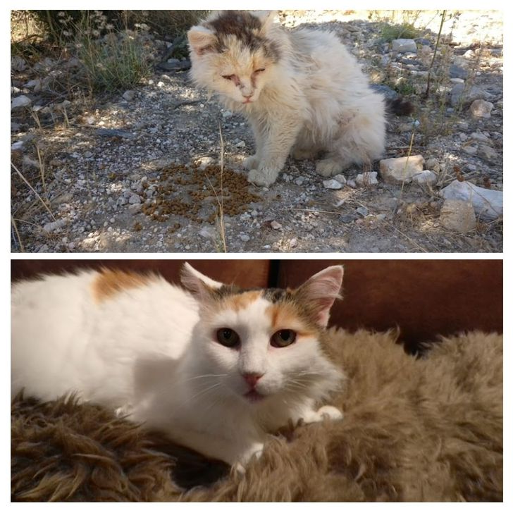 Tourists from Norway found Leia in Greece weak and malnourished. After months of effort they brought her home, where she now lives a pampered life.