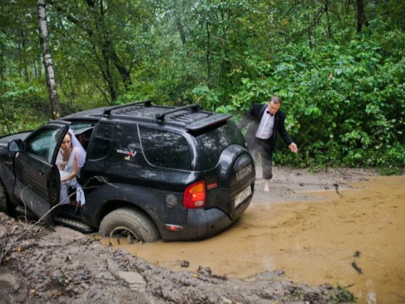 A stalled car folds everyday grit into ceremonial polish reminding everyone that real life travels alongside ritual. Shared exertion seeds a fresh anecdote. Authentic interruption enriches the storyline.