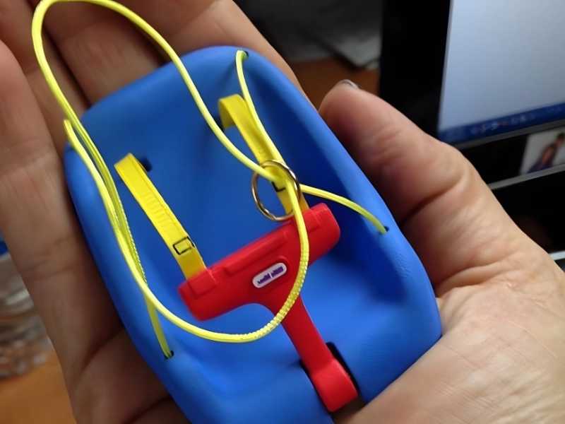 Diese Schaukelgarnitur wäre zu klein, um selbst das winzigste Baby aufzunehmen. Ein Online-Shopper bestellte eine Schaukel für sein Kind und erhielt ein Modell, das nicht einmal für eine echte Babypuppe geeignet war. Die Marke ist auf dem Foto schwer zu identifizieren, aber sicher ist, dass es sich nicht um Fisher-Price handelt.
