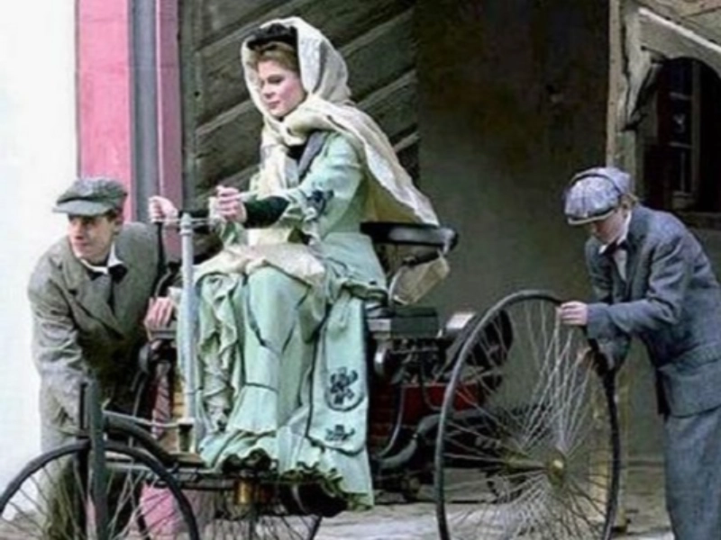 Bertha Benz am Steuer des Benz Patent-Motorwagens. Sie war die erste Autofahrerin der Geschichte.