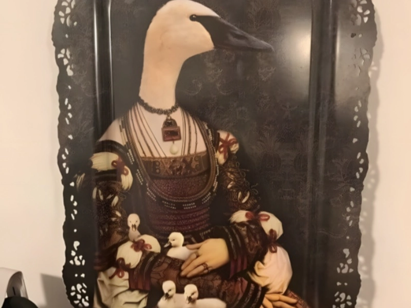 Ihre Dinner-Gäste würden herzlich lachen, schon allein wegen des Extravaganten: Ein Tablett mit einer sorgfältig darauf gemalten viktorianischen Dame – die zufällig eine Ente ist. Ihre niedlichen, flauschigen Entenküken, die ebenso gut kleine Hauben und weiße Kleidchen wie ihre schnatternde Mama tragen könnten, setzen dem Ganzen die Krone auf. Dieses Tablett sollte bei Dinner-Partys der Gesprächsstarter sein, nicht die Vorspeisen. Der Schöpfer dieses Meisterwerks sagt, die Inspiration kam bei einem besonders wunderbaren Nachmittagstee, als er eine Entenfamilie an seinem örtlichen Antiquitätenladen vorbeispazieren sah. Das Tablett hat eine ganz neue Gattung der "aristokratischen Wasservogel-Kunst" hervorgebracht, wobei Sammler nach Begleitstücken mit Gänsen in Zylindern und Schwänen in Abendgarderobe verlangen.