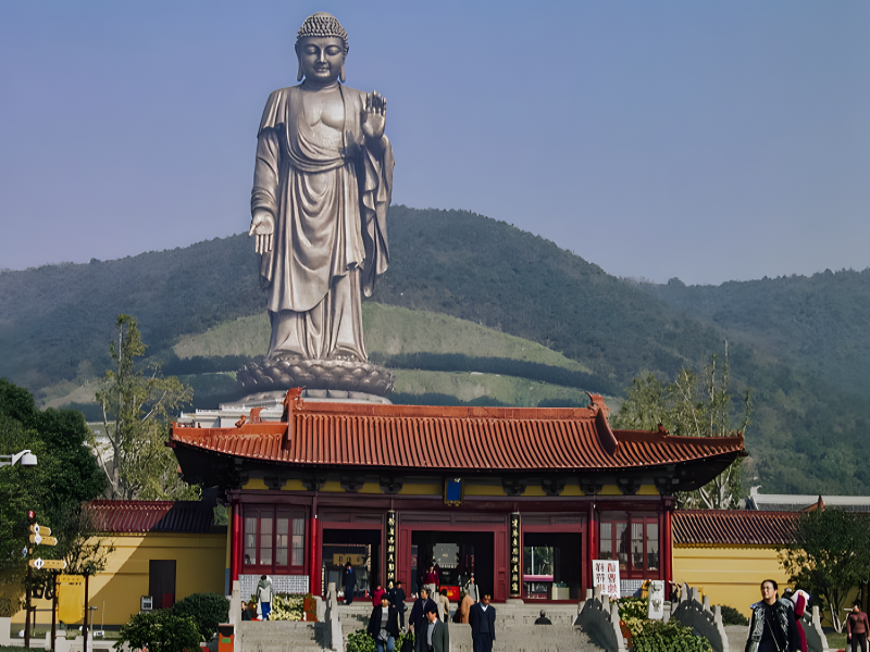 Eine 88 Meter hohe Bronzestatue des Buddha in Ushiku, China.