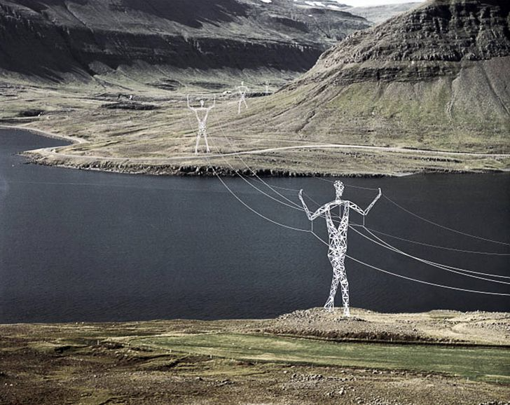 Les nations scandinaves ont un excellent sens esthétique, même pour les choses les plus banales. En 2008, des architectes islandais ont proposé de transformer des pylônes électriques ordinaires en d'énormes figures humaines. Selon les architectes, le concept derrière ces pylônes "humains" est qu'ils sont des cariatides contemporaines qui travaillent pour le peuple.