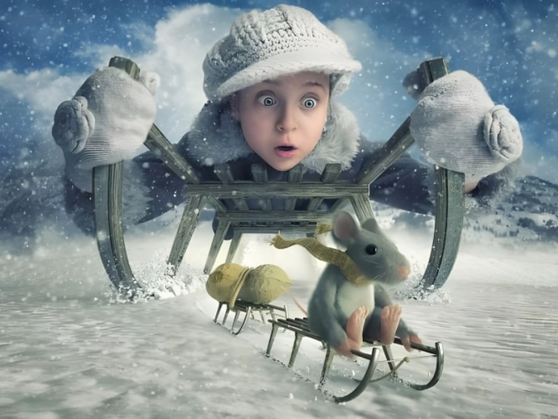 Ce scénario merveilleusement amusant donne un tout nouveau sens au paysage hivernal féerique. Imaginez la surprise de dévaler une colline enneigée vierge pour tomber sur un compagnon inattendu des sports d'hiver – une petite souris sur son propre traîneau miniature soigneusement créé ! De la tenue d'hiver de la souris à son traîneau de charge chargé avec son repas du soir, cette image présente un souci du détail incroyable. La différence d'échelle entre les lugeurs humains et la souris crée un événement magique qui semble tout droit sorti d'un roman pour enfants. Les spectateurs se demandent quels autres événements merveilleux pourraient se produire sur ces pentes enneigées, tandis que l'image capture l'excitation de la luge hivernale ainsi que la surprise délicieuse de cette rencontre inhabituelle.