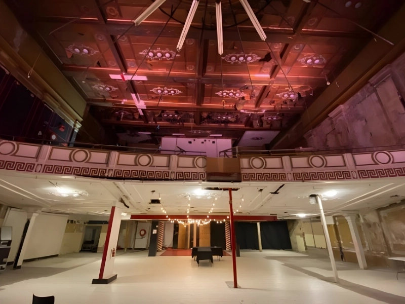 Le dernier film projeté dans ce théâtre fermé fut "Qui est enterré dans ma tombe ?" avec Bette Davis, un choix plutôt ironique, ne trouvez-vous pas ? L'immense rideau de velours du théâtre est maintenu à mi-hauteur, comme si l'on attendait le retour des représentations vivantes – un événement qui ne s'est jamais produit.