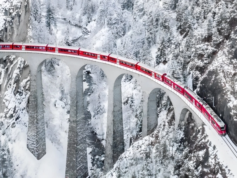 Les plus belles photos sont celles aux teintes contrastées, surtout lorsque la scène est spontanée. Il est visuellement saisissant de voir ce train cramoisi serpenter parmi des arbres parfaitement blancs recouverts de neige. Vous auriez probablement besoin de l'un des meilleurs drones disponibles pour obtenir un cliché comme celui-ci.