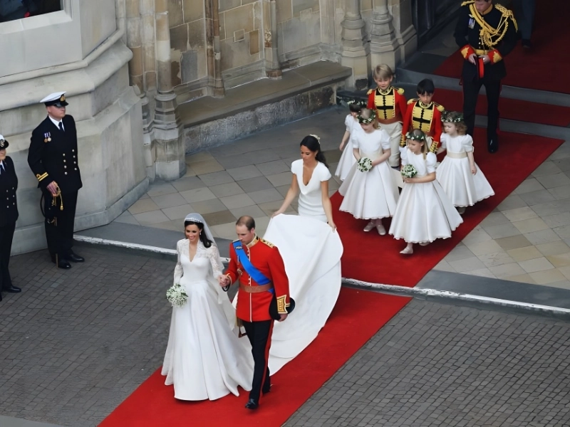 Selon le magazine Elle, il est de coutume en Grande-Bretagne que des enfants servent de pages et de demoiselles d'honneur. Même si les mariages royaux ont une demoiselle d'honneur principale, ils ne comportent pas le cortège traditionnel de demoiselles et de garçons d'honneur commun à la plupart des autres mariages.