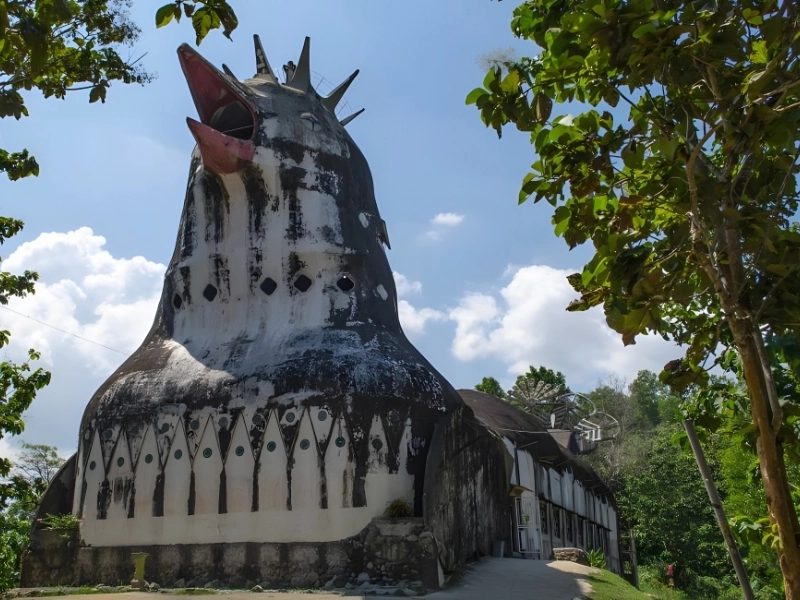 Gereja Ayam est une église insolite devenue une attraction touristique. Située dans les forêts de Magelang en Indonésie, cette immense église a la forme d'un poulet. Elle fut construite dans les années 1990 par l'architecte Daniel Alamsjah, qui affirma avoir reçu une vision divine lui ordonnant d'ériger une église en forme de poule.