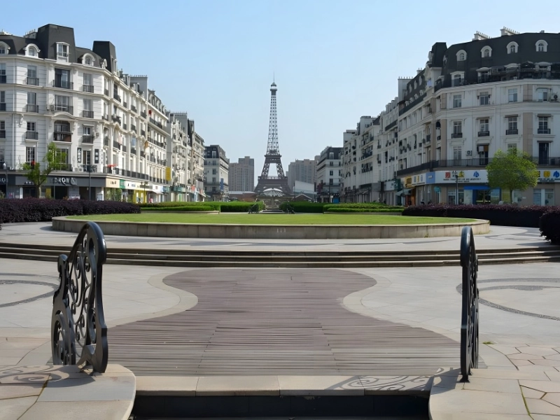 Tianducheng, une ville fantôme de Hangzhou en Chine, a été conçue pour ressembler à une version réduite de Paris. Parfois surnommée Sky City, son attraction principale est une réplique de la célèbre tour Eiffel haute de 108 mètres. On y trouve également d'autres éléments de l'architecture parisienne, tels que des jardins à la française et des fontaines.