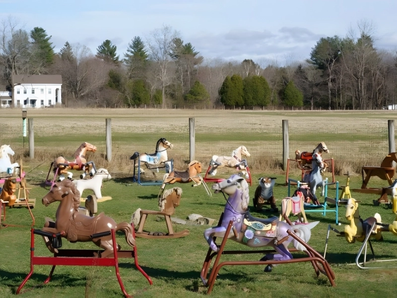 Ponyhenge, à Lincoln dans le Massachusetts, est sans doute l'une des curiosités les plus étranges de cette liste. Situé dans une vaste prairie de la Nouvelle-Angleterre, Ponyhenge est apparu en 2010 lorsque des poneys en plastique et des chevaux à bascule ont commencé à y être disposés en cercle. L'identité de la personne qui les plaçait là restait mystérieuse, un cavalier énigmatique.