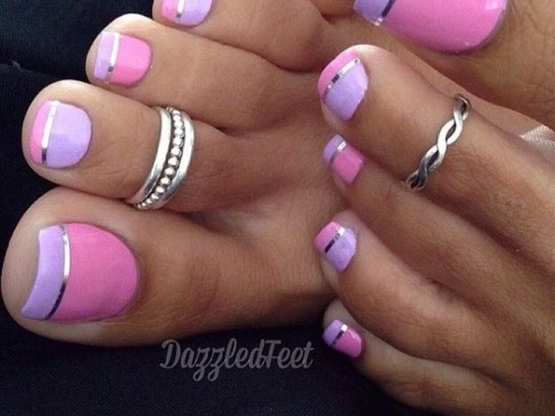 4. Pédicure à Rayures Dorées