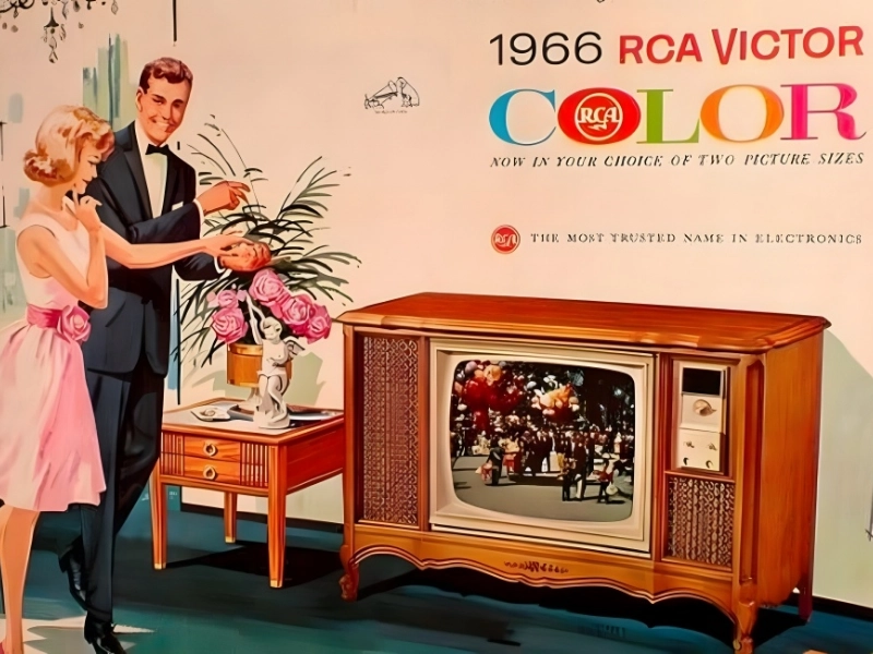 Dans les années 1960, les salons de toute l'Amérique ont été illuminés par le téléviseur couleur RCA, faisant de l'expérience télévisuelle une expérience vive et multicolore. Avant l'invention de RCA, les téléviseurs fonctionnaient uniquement en noir et blanc. La magie de la télévision en couleurs a fait son entrée dans les foyers avec l'avènement des récepteurs couleur et des diffusions en couleur, rendant des événements historiques comme l'alunissage d'Apollo ou *Le Magicien d'Oz* absolument époustouflants.