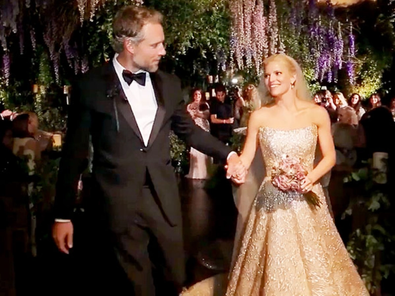 Jessica Simpson also wore a stunning marengo-colored Vera Wang gown, demonstrating her taste for refined elegance. The delicate design and premium fabric made her a vision of beauty, reinforcing her reputation for timeless style.