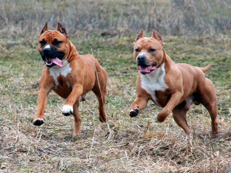 Staffordshire Terriers are loyal, bright, and strong. Under exercised or under trained dogs can develop frustration. Daily activity, mental tasks, and early manners classes foster friendly, stable behavior.