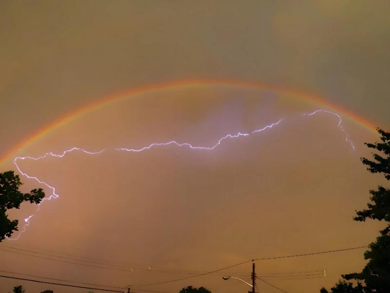 A Double Cross This rare frame combines three wonders if you look close. A lightning bolt seems to strike near a double rainbow, weaving a hypnotic tableau. Such overlap is scarce. Fierce electricity and fragile arcs emphasize natures extremes. The image rekindles awe at the worlds fleeting spectacles.