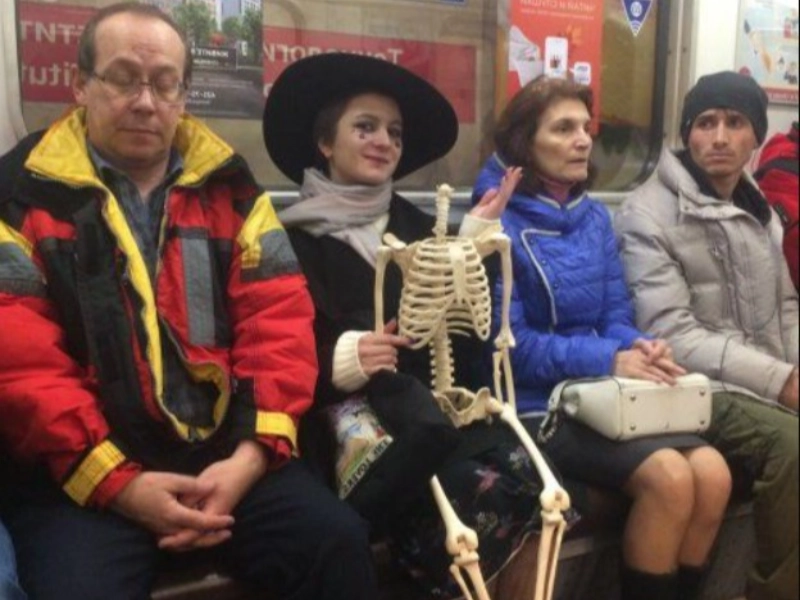 Why hide skeletons at home when you can escort them on a ride. This imaginative traveler hauled quirky companions, turning a standard trip into playful spectacle that delighted others.