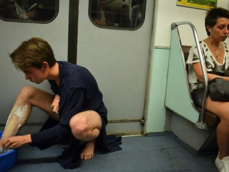 Self care need not wait. This rider turned transit into a beauty slot, refining skin or makeup on the go. Their ritual stressed the value of carving small personal moments amid rush.