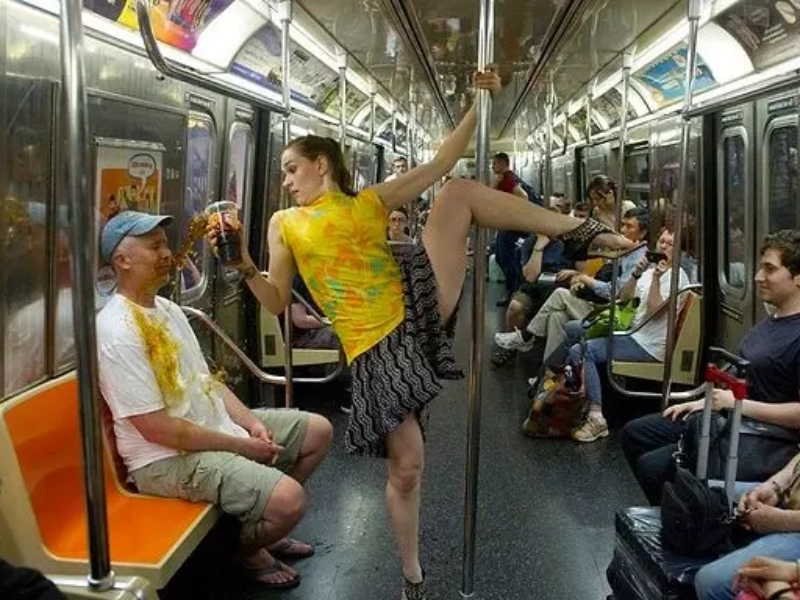 At times the tube morphs into a flash dance spot. This bold passenger spun with flair, radiating energy that captivated onlookers and proved joy can surface anywhere.